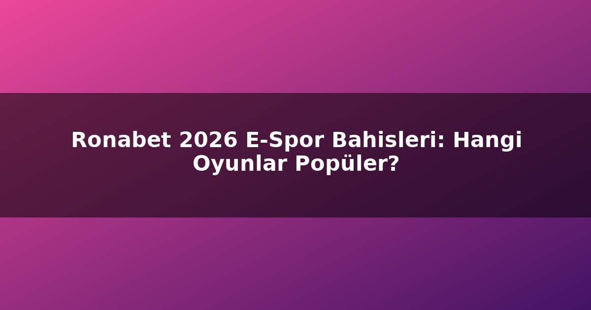 Ronabet 2026 E-Spor Bahisleri: Hangi Oyunlar Popüler?